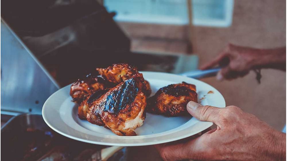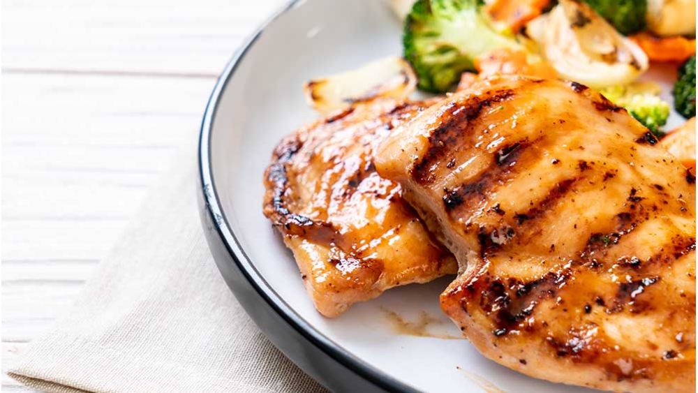 Preheat grill to medium-high heat. Add chicken to grill and cook, flipping once and basting with reserved 1/4 cup marinade until cooked through, about 5-6 minutes on each side.